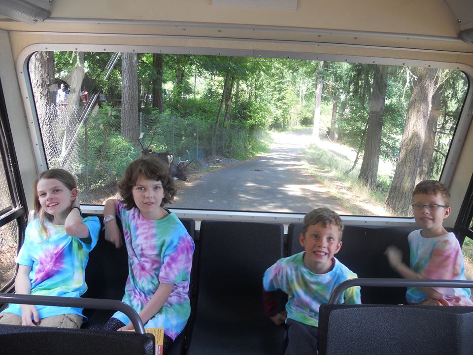 Today was chose your own adventure day. The children are old enough to have some say in what we do, so we made a powerpoint and posters for things we thought they might like, and each child chose one. Today’s adventure was the Carolyn Adventure, Northwest Trek. The tram ride was awesome. We saw a bull moose about 5 feet from the tram. We saw caribou, bison, elk, big horned sheep, deer. We saw ducks, geese, and swans. The bull elk herd was hot, so they were all standing in the water, fabulous racks bending and twisting like wind-tossed reeds.