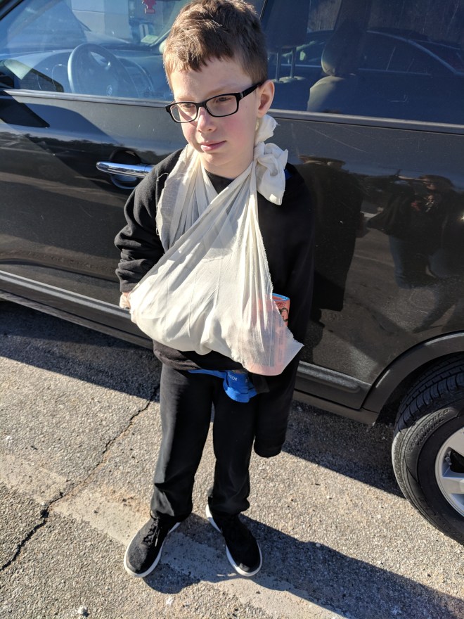 The slopes were apparently treacherous today – a sturdy remnant of ice limned by a bare modesty of created snow. Adam says it’s the worst he’s ever skied on. He feels guilty for bringing his son there to be injured. We both feel badly about basketball. Thane’s been doing SO WELL on the courts lately, and he has an amazing coach this year. I’d venture this is at least a two week outage on the courts. Given that it’s his dominant shooting/dribbling hand, maybe more. Thane was a trooper the whole way through. He’s so sturdy and reliable and tough.