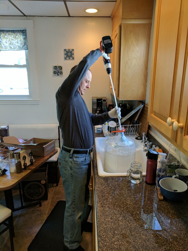 I had elaborate schemes for moving everything, while keeping everything perfectly sanitary. But then the auto-siphon wasn’t long enough to reach all the way into the carboy and disasters occurred with the sterile environment. Worse yet, at one point the bung came out of the bottom of the bucket and the entire floor was awash in uncarbonated beer. There were many bad words spoken.