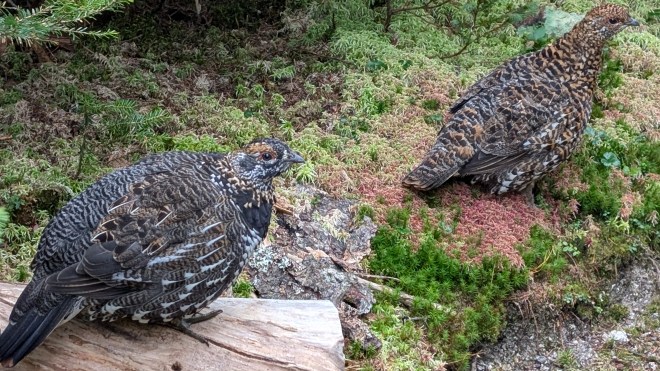 Right before Zealand (also no views), we got a visit from a friendly grayjay looking for a handout. More surprisingly, we encountered a flock of ~7 blue grouse blocking the trail and strutting their shockingly good camouflage – which broke up a very long and rather undifferentiated UPHILL. Zealand was disappointing, but Guyot was surprisingly alpine and beautiful, with a gigantic block of quartz the size of a head marking the cairn at the summit. We were ready for lunch, but not even a third of the way through our mileage. We slammed in some sandwiches and moved on.