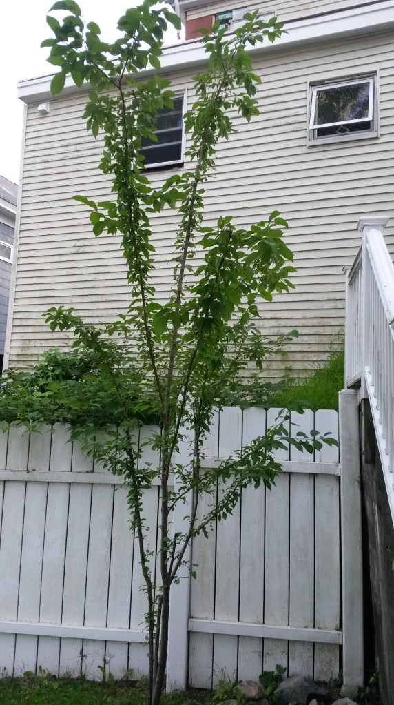 Then, there came a moment when I suddenly knew exactly what to do. I myself do not understand the genesis of this idea – the germination or pieces that went into its creation. I do not know how I knew these things. But I knew … I had to plant a pawpaw tree. I’m working on my patter for “What the heck is a pawpaw?” The pawpaw is the largest native north American fruit. You possibly might vaguely remember having heard of it through songs like “The Pawpaw Patch“. It is slightly larger than apple sized, has a thick skin and a few big seeds, and the fruit is described as a citrusy custard – like a cross between a banana and a mango. It’s been grown in America since before we colonists arrived. Although Massachusetts would have been traditionally too far north for its zone, with the change in our climate we are now warm enough to host it. The reason you’ve never heard of it isn’t because it isn’t delicious. It’s because there aren’t any varietals of pawpaw that are durable enough and last long enough to survive the American Corporate Food Chain. It doesn’t ripen once picked, is very fragile, and only lasts about 5 days after it ripens. So you just can’t pick it, pack it, ship it, stock it and eat it in time. It is an unbuyable, historic fruit. In other words, absolutely perfect for me.