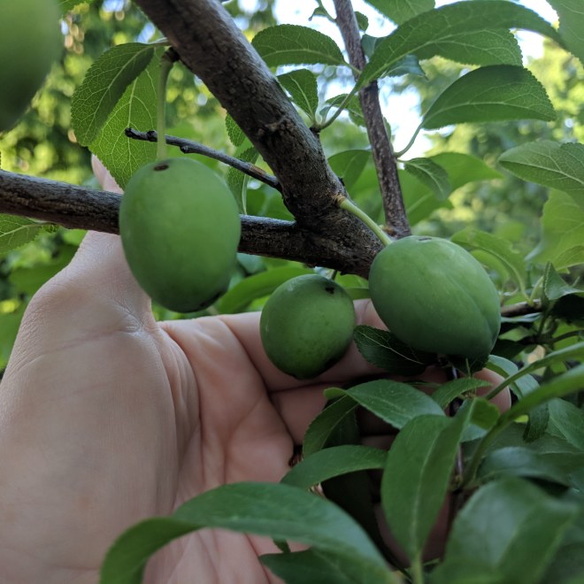 So I had a choice. I could give up on a foolish, childish dream of fruit. This is tempting. There is no argument that my attachment to this tree and this hope is a sensible one. I know that any other plum I plant would likely suffer a similar fate – this blight will likely linger in soil and suckered-sprout for years yet. Our land is not appropriate for orchards. I have no skills or abilities to raise a healthy tree. I should just go buy my fruit like a normal American. I can feel the weight of the pressure to just be normal already. To not care so much about things that are so stupid. To pretend to myself and the world that this is just a tree like any other, and use it as an opportunity to teach my kids how to use a chain saw. Maybe put in a nice patio or something, with a sun umbrella.