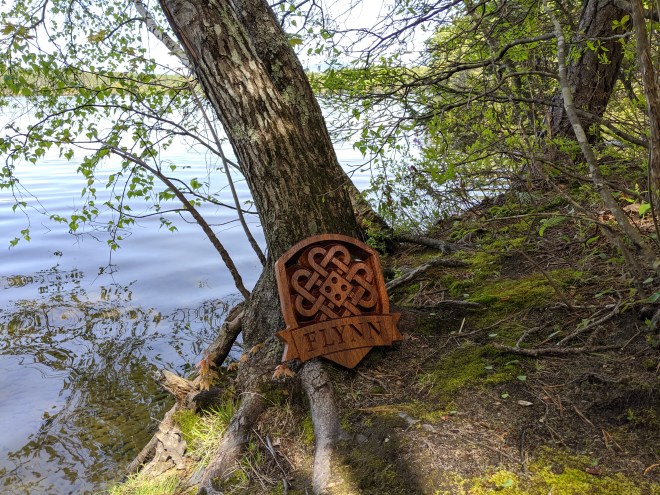 My other favorite craftsman job is this Camping Sign. These kinds of family markers are common among the family campgrounds in the White Mountains. They include cast iron pans with paint, gifts from grandkids made in shop, or the work of master craftsman now retired. I have wanted a camping sign for some time, and Adam came through with a version done in our crest. To our surprise and delight, the best qualified craftsman for this custom project was just down the street: SignMeUpCustomSigns.com He actually dropped the sign off in person, and showed off the marine grade lacquer and craftsmanship. He said his homemade CNC machine is big enough to do a standard sized door.