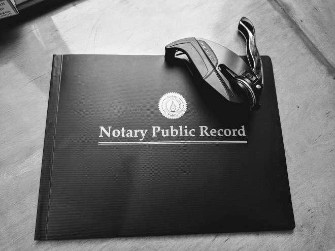 So now I’ve been approved, I’ve been sworn in, and I’ve gotten my shipment of fancy book & stamps. I’m 100% ready to begin my life as a notary. Now I just need people who need stuff notarized. That’s where you come in! I did this entirely out a desire to be useful to my community. So asking me to notarize stuff isn’t a favor that you’re pulling from a friend – it’s my intention. Please feel more than free to reach out to me to ask me for notary help, for yourself or a friend of yours. I’ll add that even though I’ve known you forever, I’ll still need to see an ID – so please bring one as well as all parties who need to sign whatever I’m notarizing. I’m thinking about taking an hour or two periodically on a Saturday to sit in Kushala Sip & offer notary services to whoever needs them. Does that seem useful? Do you have any good ideas about how I can offer notary services to folks who need it?