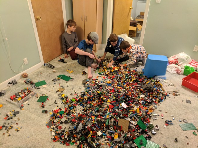 Well, at least that was the concept. In reality, it’s difficult to manage two not-strong-yet skiers simultaneously. Right now I have on my left a sweet little Thane-boy narrating the creation of Lego elements telling the story of Lloyd Alexander’s “Book of Three”, which he’s reading at the moment. Adam and Grey are skiing together. They’ll switch off in a little bit.