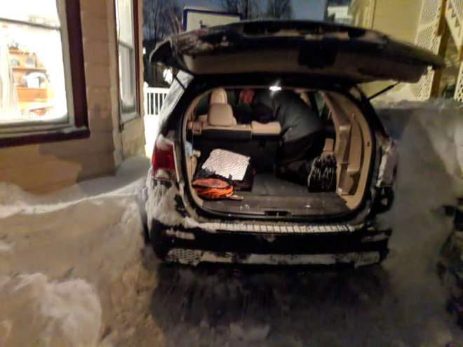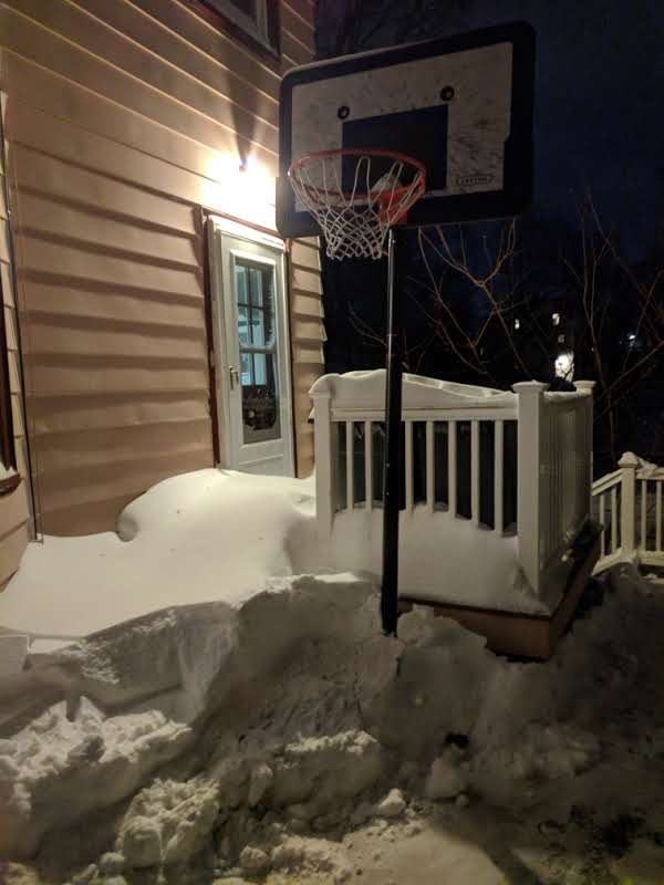 11:21 pm – well. I think that was as much snow as we’ve ever dug out of our driveway from one storm. The snow piles are nearly as tall as 2015! The snow stopped falling around 5 pm and the wind stopped whipping. It’s hard to tell with the drifts how much fell, but I’d have to think it was at least a 12 inch baseline. And our driveway is not kind to us in the drift department. Adam probably spent 3 hours shoveling. I spent at least two. It really had to be done tonight, because the big freeze coming will make the snow harder and the work harder. But we did it. Mostly. I think.