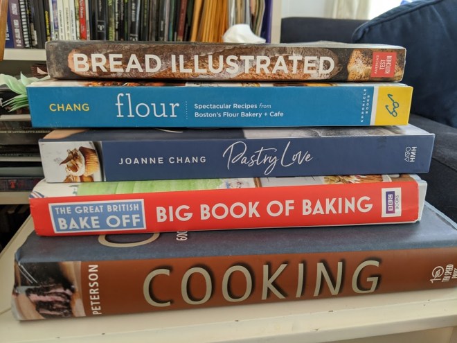 Anyway, this is how I learned to shop, and this attitude remains true, even though we live a quarter of a mile from a (usually) well stocked grocery store. So we were well prepared for a 2 week “eat what you have” plan. But into our idyllic backlog of Costco whole wheat pasta, there came the voice of want. Here I was, watching the Great British Bakeshow with dreams of dinner rolls, pies, cakes and donuts dancing through my head. And Adam makes bread for our family every week – and usually a few loaves to share. But then we did a grocery store run – and there was no flour to be had. We checked the pantry – and the flour supplies were paltry. We looked online, and they’re scalping flour. Peapod was out. Amazon was delivery 25 pound bags only …. in mid April. Costco was out. Target was out.