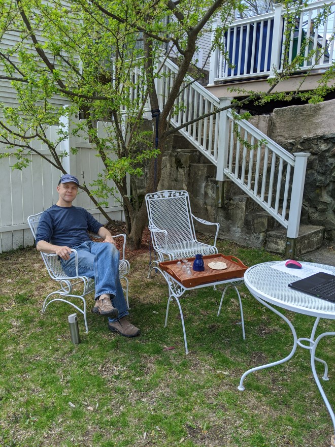 Not being a fool, I early resolved that my plan for this weekend was to spend as much of it as was humanly possible outdoors. Given that it’s nearly 11 and I’m still by a backyard fire, I declare said plan fulsomely accomplished. Usually weekends like this would be subject to the whim of the calendar: had I already committed myself? Was it to something outdoorsy? But yesterday I woke to a clean slate of a plan, and (after the delicious breakfast prepared for my by my incredibly loving husband) I started with a five mile run along the bike way that I played a small part in ensuring was here for us, now, when we need it most. The Aberjona and Sweetwater were both running high along their banks, and the trail was crowded with folks enjoying the finest weather we’ve seen in six months. Most of them, including me, were wearing masks.