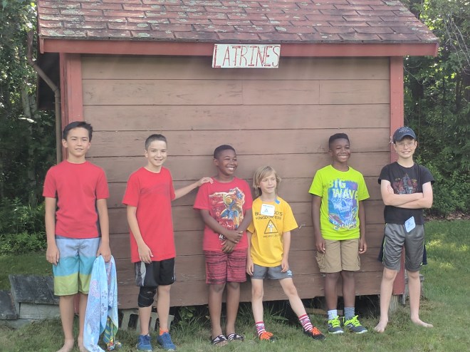 There are so many incredible and wonderful things summer camp does. It gives us all practice in living without each other. The role of a parent is to raise a child who doesn’t need us. Camp is an excellent experiment in structured self-reliance. No one made Grey change his shirt, but he came home happy and healthy. He packs his own bag. He knows things that we do not know. I think it’s a grievous thing to send a person to independence for the very first time when they are an adult, and there is no safety net. Summer camp is how you practice for college. It’s also a place for children to have deep meaningful thoughts, and begin to stretch the muscles of what *they* believe and what *they* think and what’s important to *them*. Some of my greatest moments of faith happened at summer camp. I can only pray that my sons find the experience meaningful and moving too.