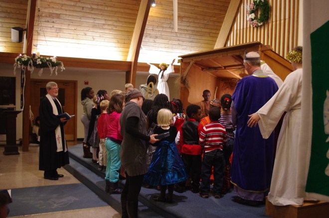 The children come forward for Away in a Manger